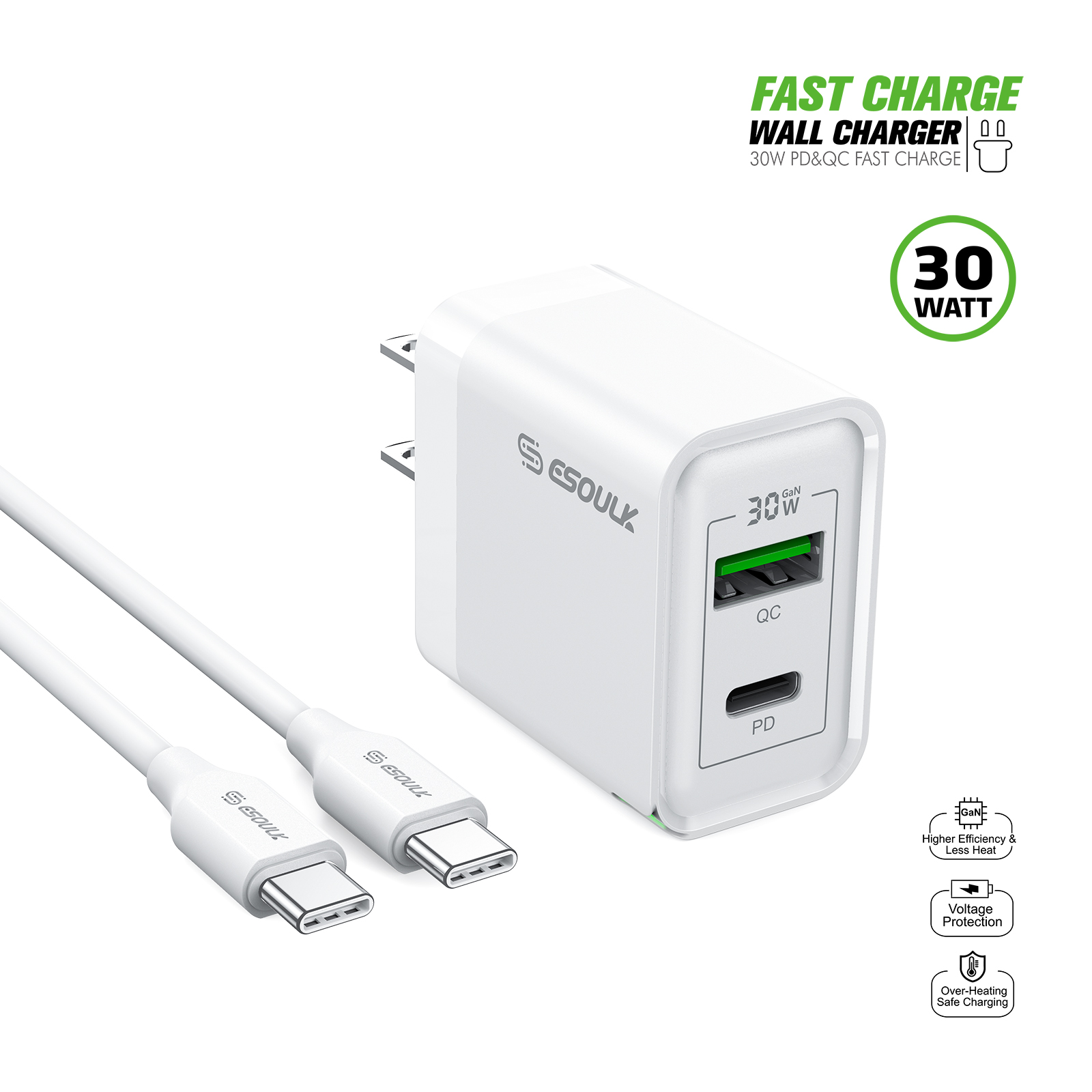 • 2 PORTS: QC USB-A & PD USB-C