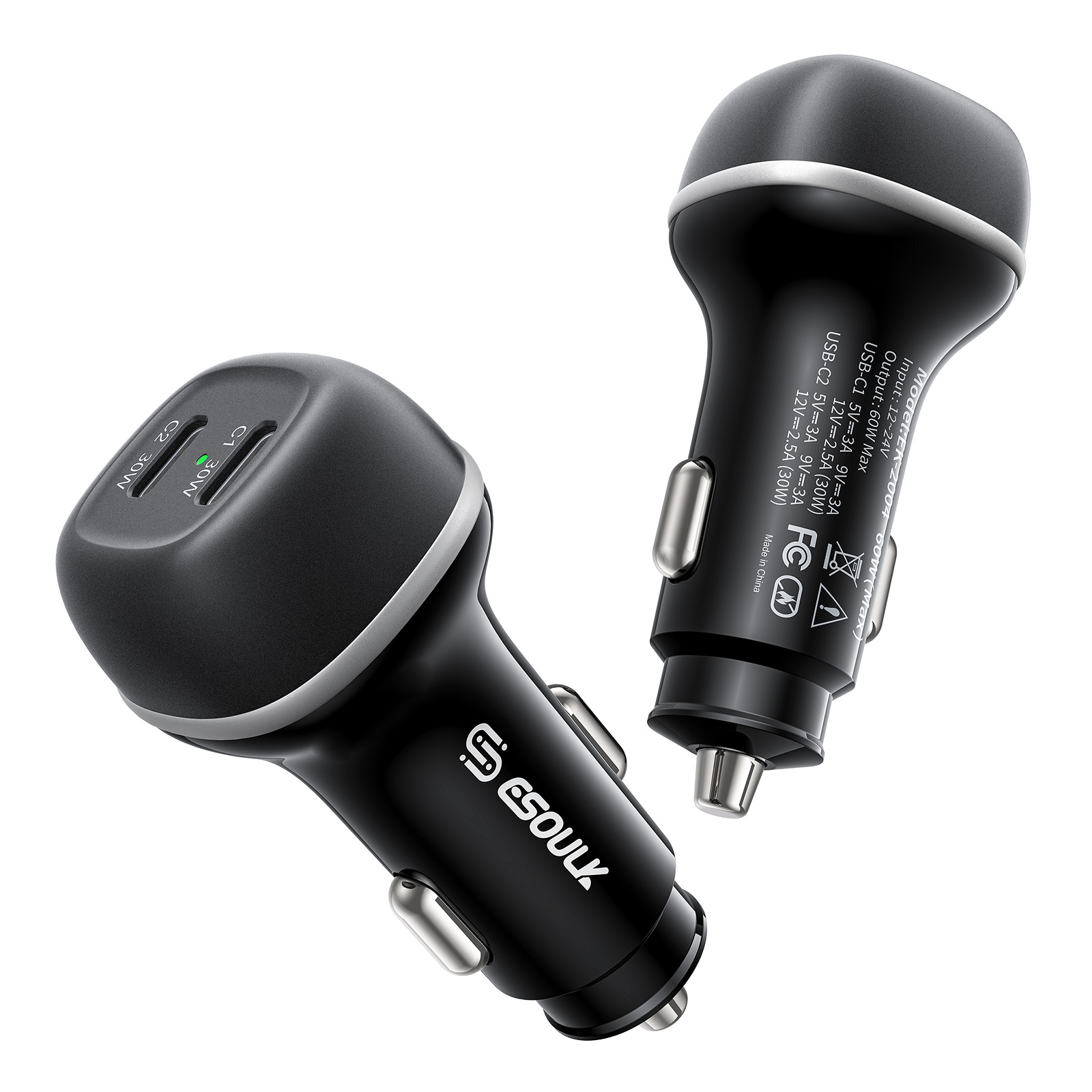 Esoulk 60W PD Dual USB-C Fast Car Charger (Black)