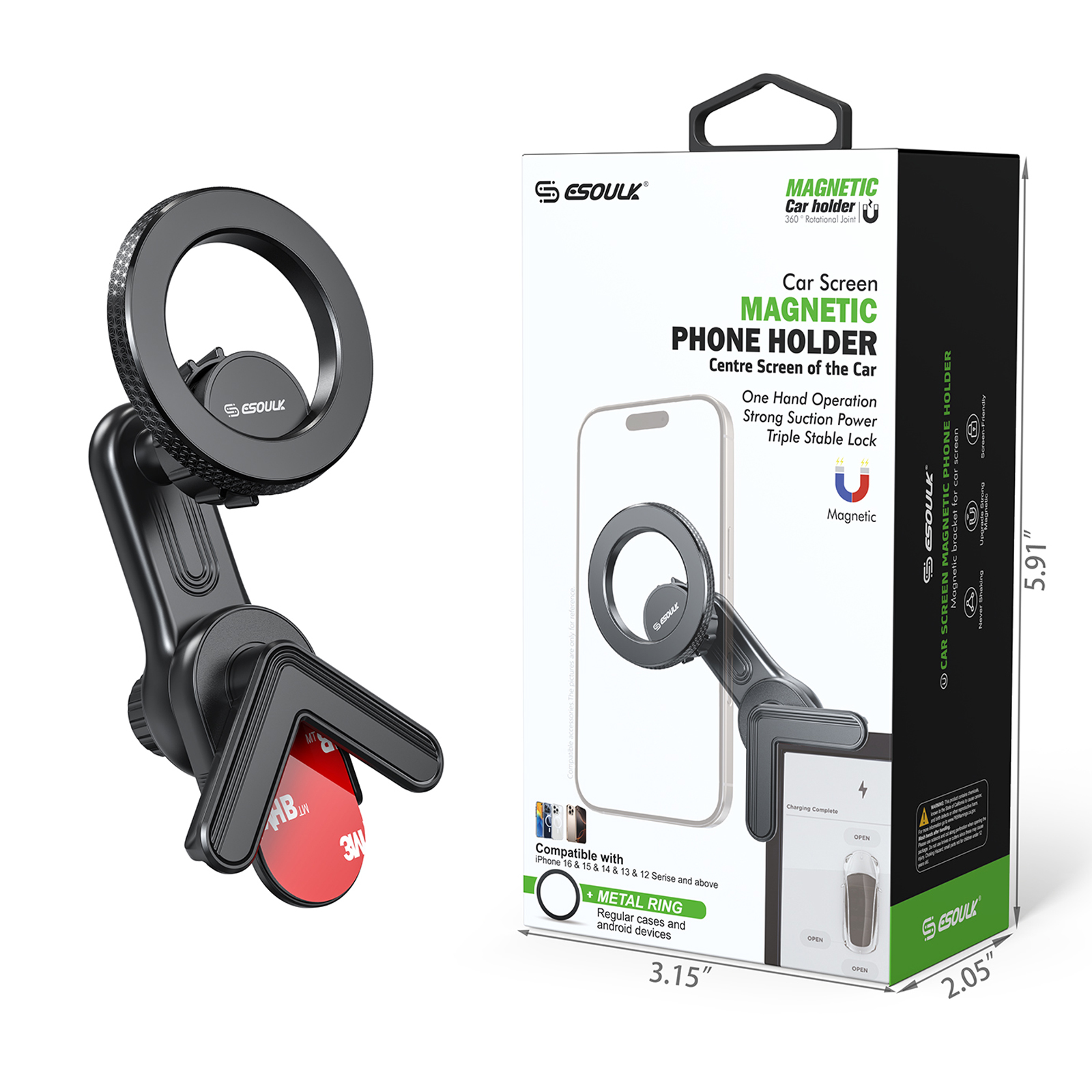 The Esoulk Car Screen Magnetic Phone Holder for Tesla is designed to securely hold your phone in place while you drive, providing convenience and easy access. Its magnetic design ensures a stable and safe attachment to the Tesla screen, without obstructing the view. Here are some typical features: