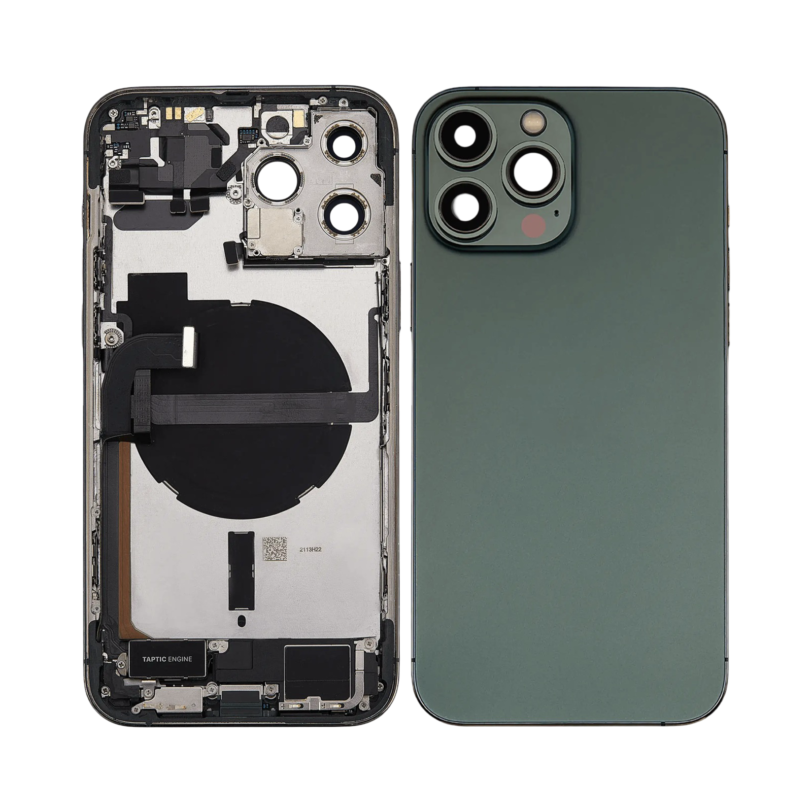 iPhone 13 Pro Max (US Version) (Used OEM Pull: Grade B) (Alpine Green) Back Housing W/ Charging Port Flex & Small Parts