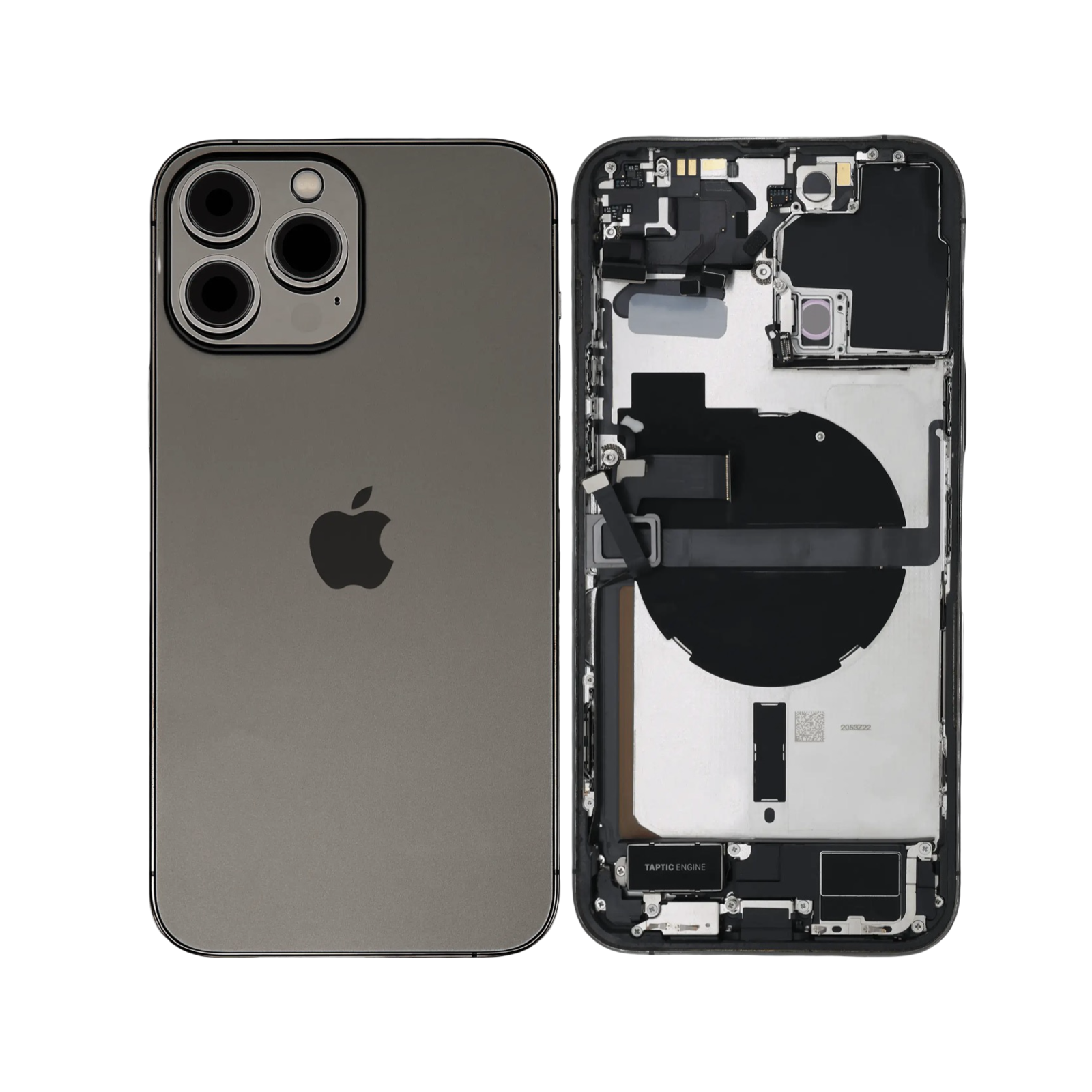 iPhone 13 Pro Max (US Version) (Used OEM Pull: Grade B) (Graphite) Back Housing W/ Charging Port Flex & Small Parts