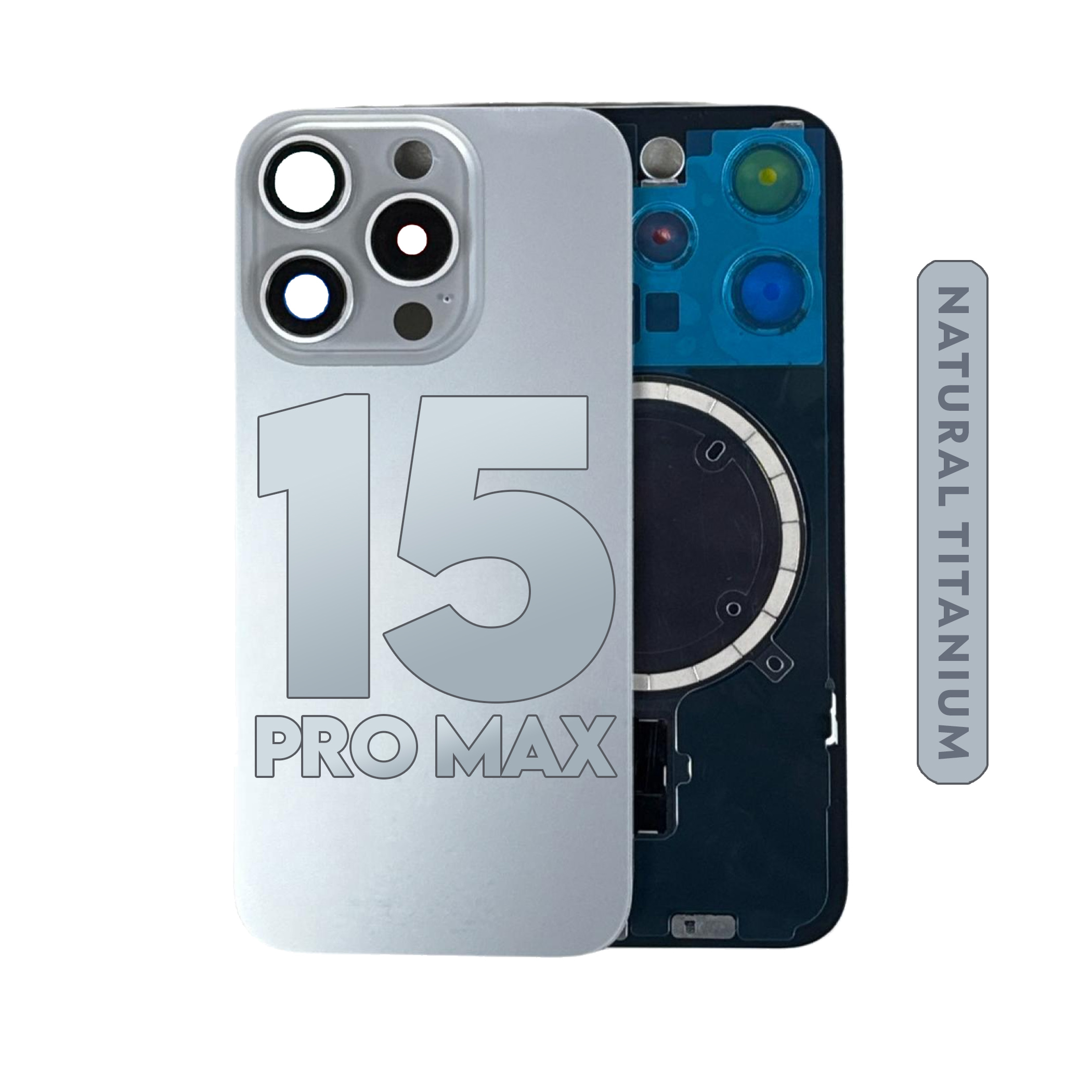 iPhone 15 Pro Max | Back Glass With Camera Lens and Magsafe Magnet (Natural Titanium) (No Logo)