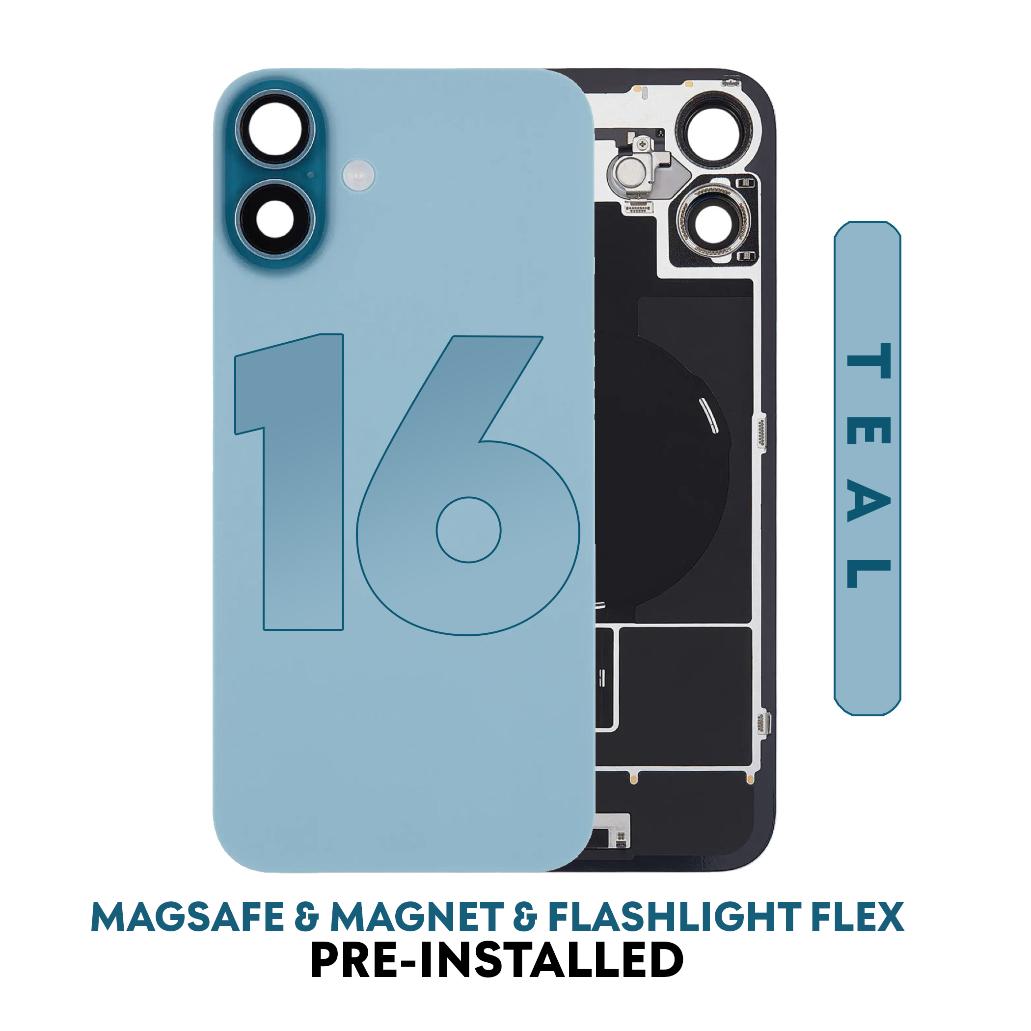 iPhone 16 | Back Glass With Magsafe & Magnet & Flashlight Flex Pre-installed (Teal) (No Logo)