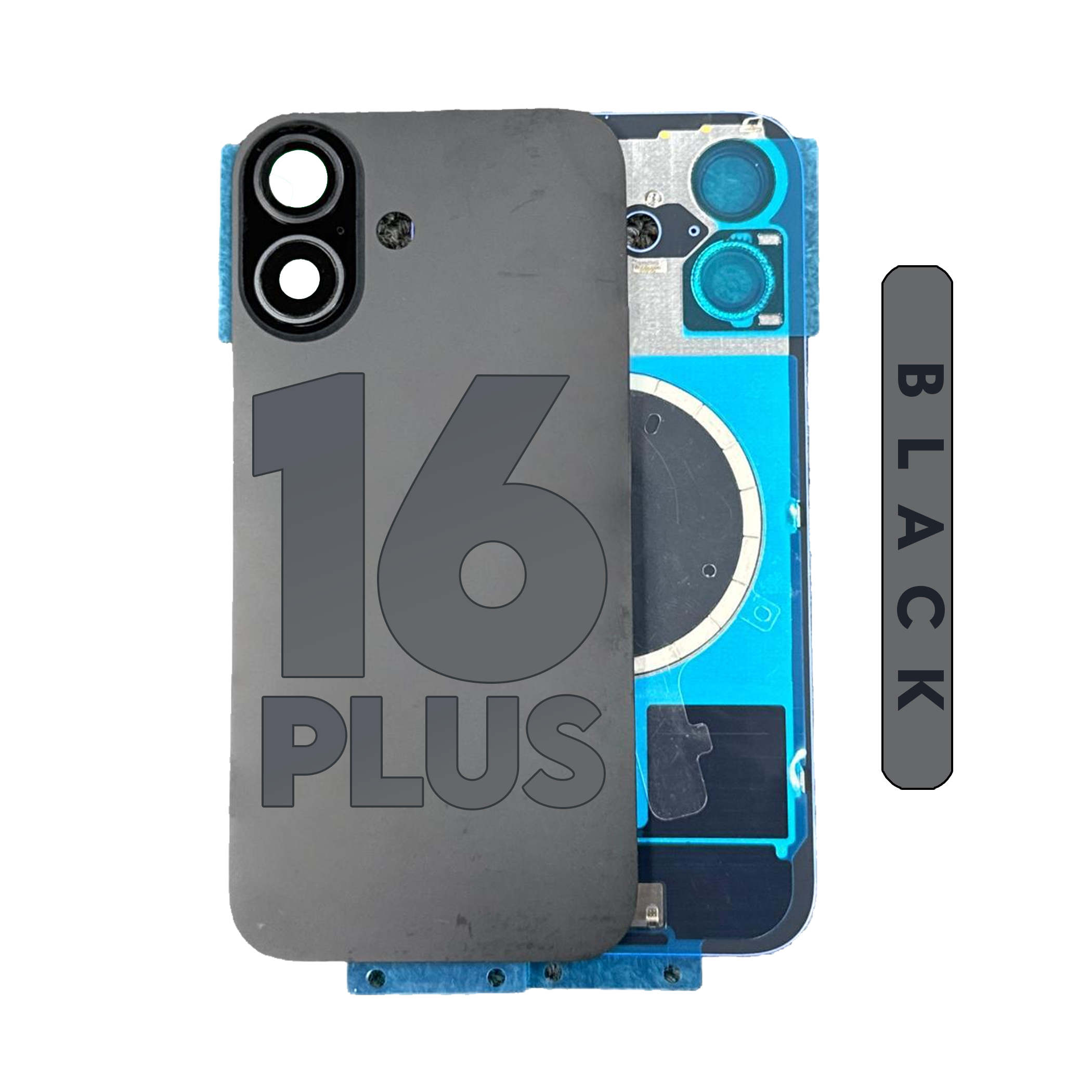 iPhone 16 Plus | Back Glass With Camera Lens and Magsafe Magnet (Black) (No Logo)