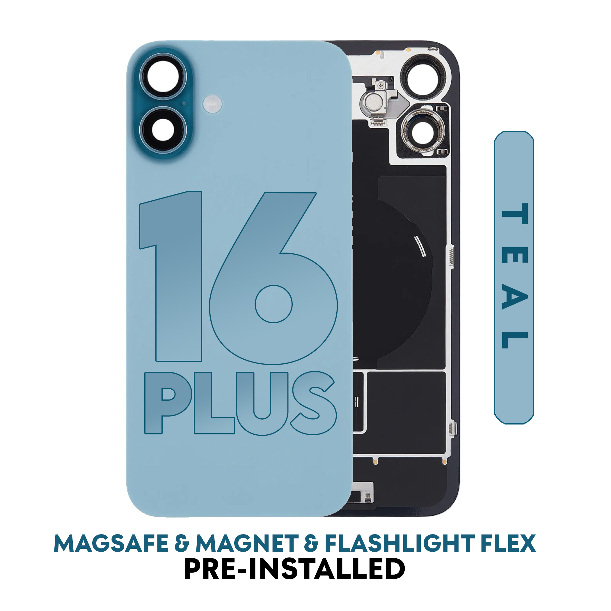 iPhone 16 Plus | Back Glass With Magsafe & Magnet & Flashlight Flex Pre-installed (Teal) (No Logo)