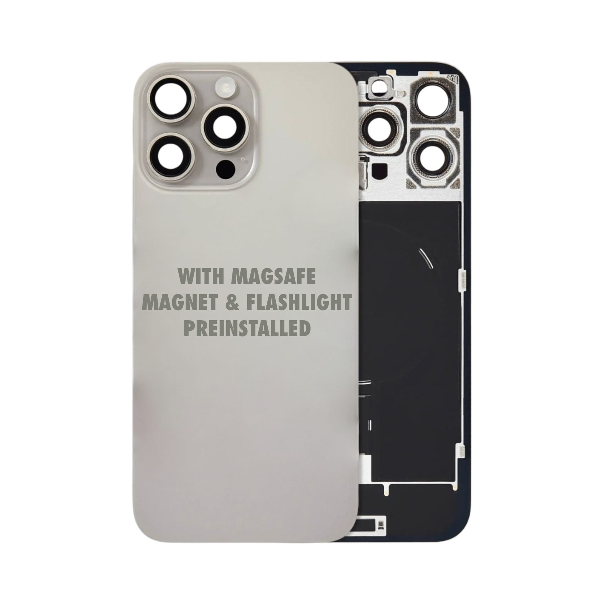 iPhone 16 Pro Max | Back Glass With Magsafe & Magnet & Flashlight Flex Pre-installed (Natural Titanium) (No Logo)