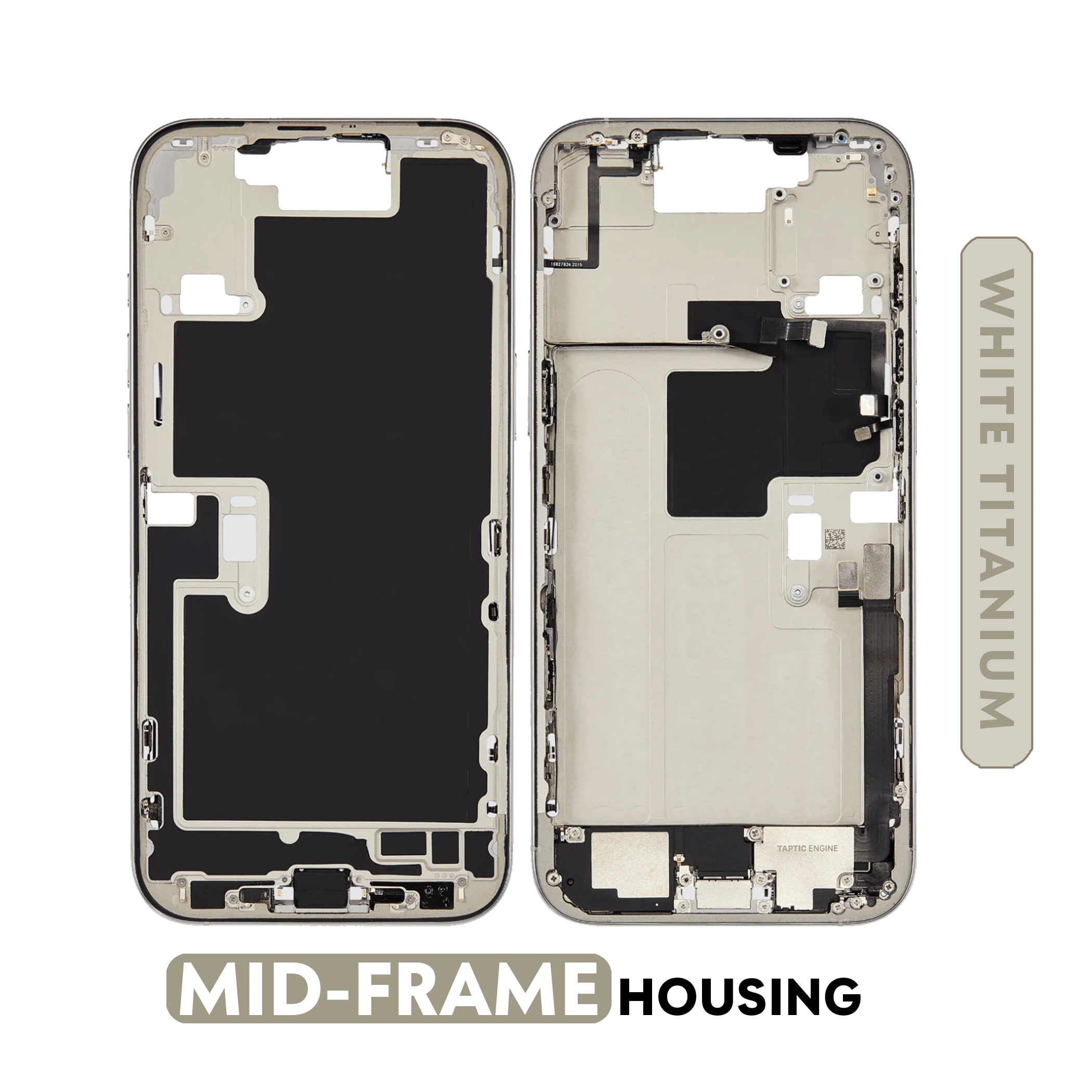 iPhone 16 Pro max | OEM Pull Grade B | Mid-Frame Housing With Charging Port Flex And Small Parts (White Titanium)