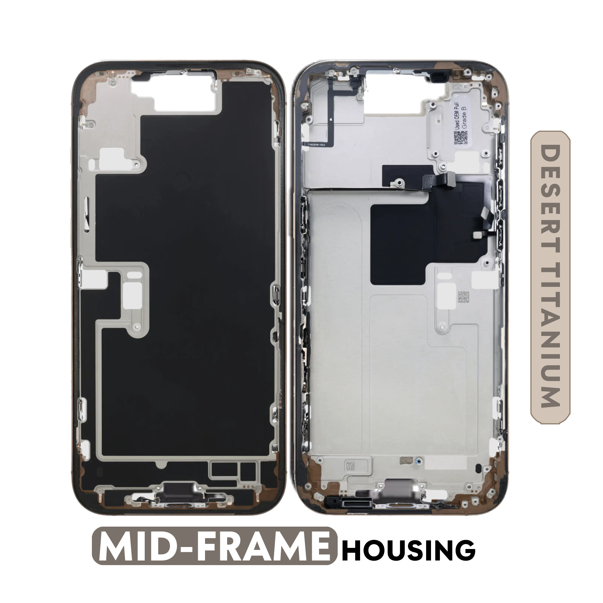 iPhone 16 Pro | OEM Pull Grade A | Mid-Frame Housing With Power And Volume Button (Dessert Titanium)