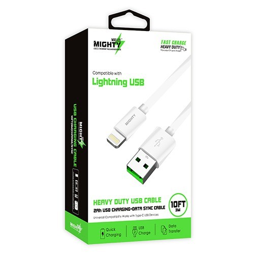 Mighty Fast Charging 10FT Lightning Cable White MK21