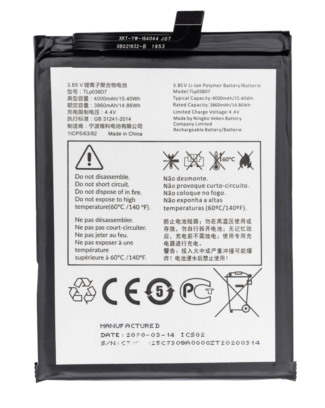 T-Mobile Revvl 4 Plus (5062 / 2020) / Alcatel 3X (5061 / 2020) (TLp038D1) Battery